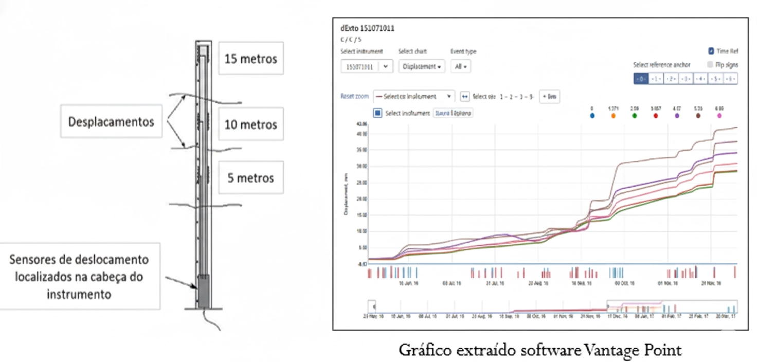 As medições podem ser referenciadas à boca do furo na parte superior ou à âncora mais profunda na parte inferior.