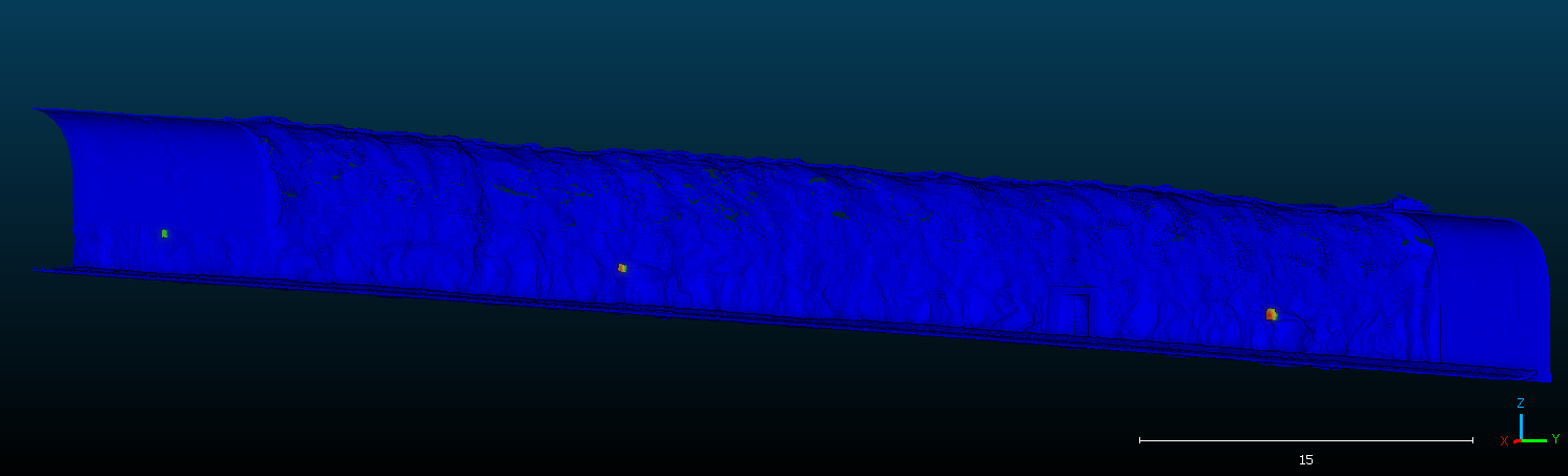 O escaneamento móvel captura dados de grandes extensões de túneis em um tempo muito menor em comparação com métodos topográficos tradicionais, minimizando as interrupções na operação.