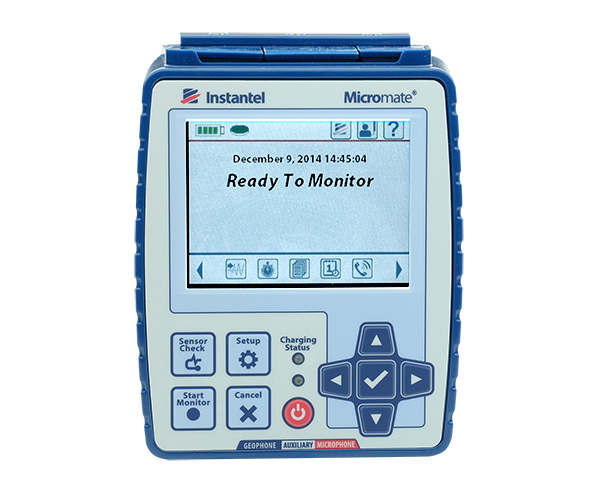 O monitor de vibração alimenta o geofone, converte seus sinais em velocidade das partículas e verifica se a velocidade máxima das partículas está dentro dos limites predefinidos